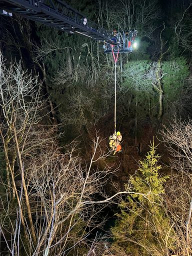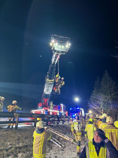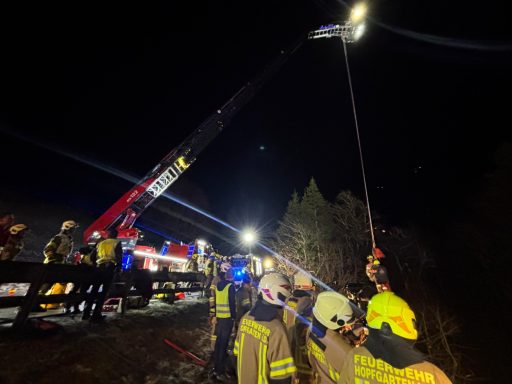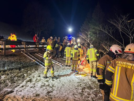 Am Freitag, dem 19.12.2025, um 17.24 Uhr, wurde die Freiwillige Feuerwehr Huben mittels Paiger zu einem Fahrzeugabsturz in der Nachbargemeinde Hopfgarten i.D. alarmiert. Ein österreichischer Staatsbürger kam aufgrund eines Sekundenschlafes von der Fahrbahn ab, schlitterte der Leitschiene entlang und stürzte anschließend über einen steilen Abhang ca. 35 Meter hinunter in die Schwarzach.